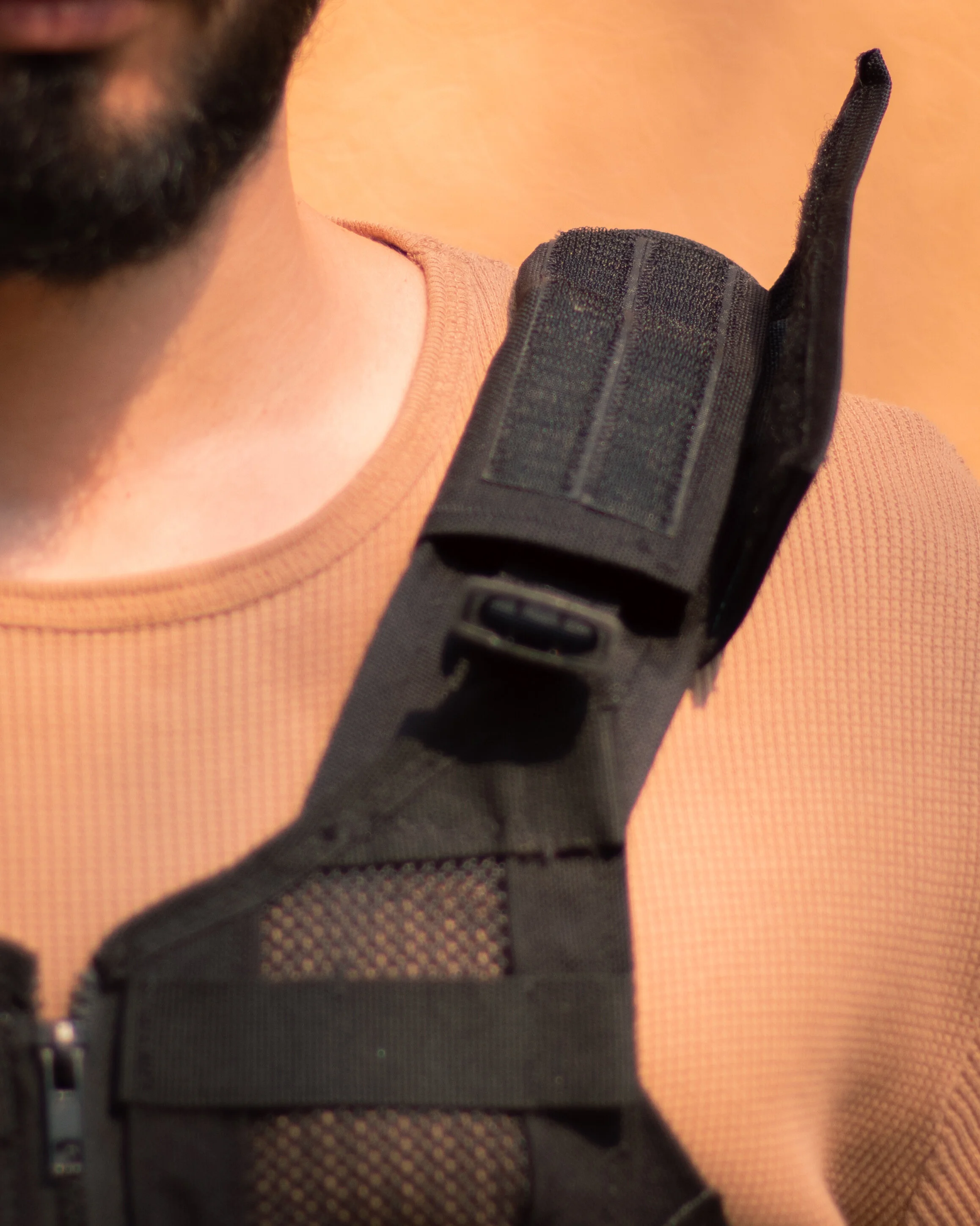 We began by identifying the specific challenges they faced. While durability and comfort were essential, modularity played a significant role in enhancing the harness’s functionality. The design was influenced by the principles of existing belt rig systems, but we wanted to take those ideas further by incorporating flexibility into the harness. This approach allowed the chest rig to be decoupled from the belt rig, giving users the freedom to adapt the setup to their immediate needs.